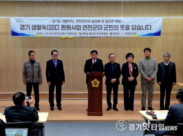 [경기핫타임뉴스=김삼영 기자] 경기도의회 농정해양위원회 부위원장 윤종영 의원(국민의힘, 연천)은 14일 오후 4시, 경기도의회 브리핑룸(302호)에서 기자회견을 열고 ‘경기 생활쏙(SOC) 환원사업’이 공공개발 이익을 도민의 삶으로 되돌리는 첫 번째 실질적 집행 사례가 되어야 한다고 강력히 역설했다.