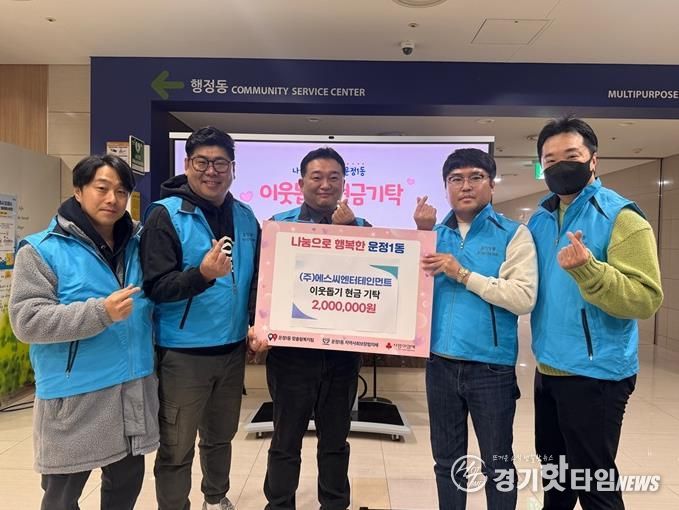 [경기핫타임뉴스=김형철 기자] 파주시 운정1동은 지난 14일, 고양시에 위치한 ㈜에스씨엔터테인먼트로부터 관내 저소득 가구 지원을 위한 성금 200만 원을 전달받았다고 밝혔다.