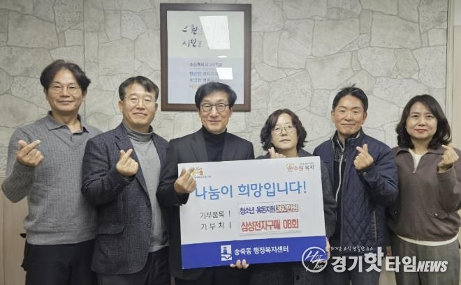 [경기핫타임뉴스=김삼영 기자] 수원시 장안구 송죽동은 지난 15일 삼성전자 구매OB회와 함께하는 ‘청소년 용돈지원사업’ 후원금 전달식을 개최했다고 밝혔다.