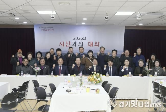 [경기핫타임뉴스=김형철 기자] 상패동 행정복지센터는 2026년 1월 14일, 박형덕 동두천시장을 비롯해 시·도의원, 지역 사회단체장 및 주민 등 50여 명이 참석한 가운데 ‘2026년 시민과의 대화’를 개최했다.