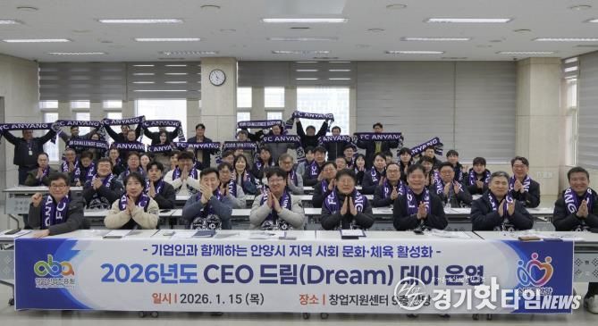 [경기핫타임뉴스=김삼영 기자] 안양산업진흥원은 15일 오후 3시30분 안양창업지원센터 강당에서 관내 기업인 150여 명을 대상으로 지역사회 문화·체육 활성화를 위한 ‘2026 CEO 드림(Dream) 데이’를 열었다.
