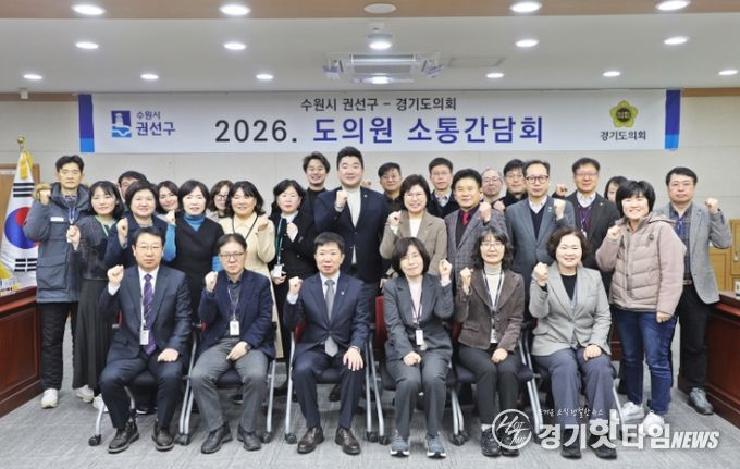 이날 간담회에는 구청 간부공무원과 경기도의회 황대호 문화체육관광위원장, 이애형 교육행정위원장, 문병근 의원, 장한별 의원 등 권선구 지역 도의원들이 참석했으며, 2026년 상반기 특별조정교부금 필요사업 설명, 주요 건의사항 청취 및 구정 발전 방안 논의 순으로 회의가 진행됐다.