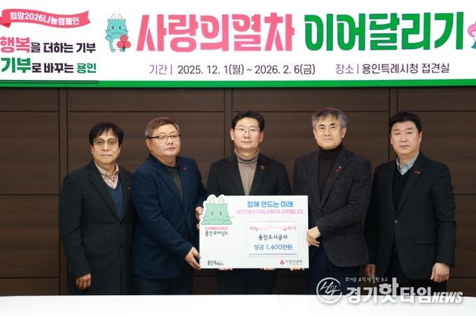 [경기핫타임뉴스=김삼영 기자] 용인도시공사는 19일 ‘노사합동 사랑의열차 이어달리기’ 성금 1,400만원을 용인특례시에 기탁했다.
