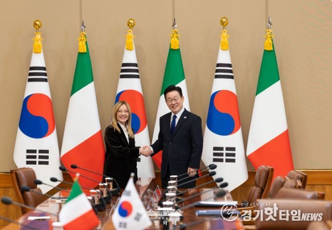 [경기핫타임뉴스=김삼영 기자] 이재명 대통령은 19일 한-이탈리아 정상회담에서 "과학강국으로서의 이탈리아의 전통적인 강점 그리고 기술강국인 대한민국의 핵심 DNA가 힘을 모으면 양국이 큰 시너지를 창출할 수 있을 것"이라며 양국 협력 확대를 강조했다.