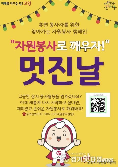 [경기핫타임뉴스=김형철 기자] 고양시자원봉사센터는 휴면 봉사자들의 자원봉사활동 참여 촉진을 위한 ‘자원봉사로 깨우자 멋진날’참여자를 상시 모집한다고 20일 밝혔다.
