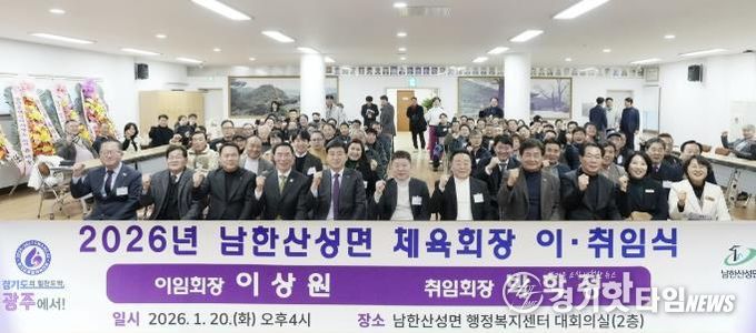 [경기핫타임뉴스=김삼영 기자] 광주시 남한산성면 체육회는 지난 20일 남한산성면 행정복지센터에서 ‘2026년 남한산성면 체육회장 이·취임식’을 개최했다.