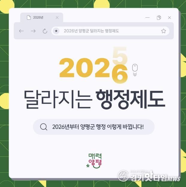 [경기핫타임뉴스=김형철 기자] 양평군은 지난 16일, 2026년 새해를 맞아 보건·복지·청년·일반행정 분야의 행정제도를 확대·개선해 군민 생활 전반에 보다 촘촘한 지원과 체감도 높은 행정을 추진한다고 밝혔다.