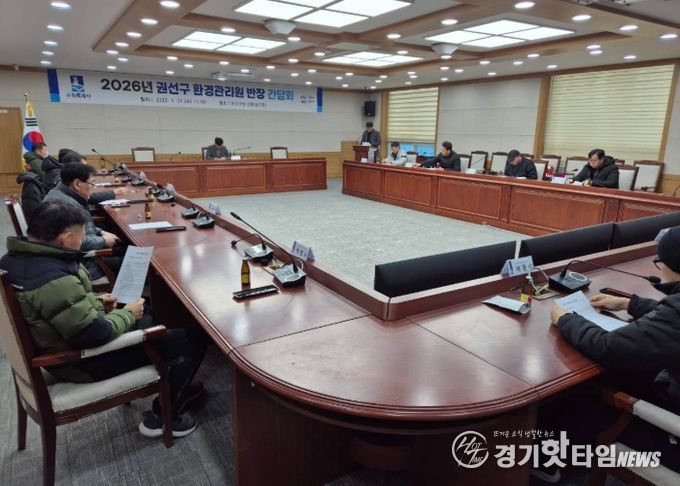 [경기핫타임뉴스=김삼영 기자] 권선구 환경위생과는 최일선에서 일하는 환경관리원들을 격려하고 애로사항을 청취하고자 ‘환경관리원 간담회’를 2026년 1월 21일 오전 11시에 개최했다.