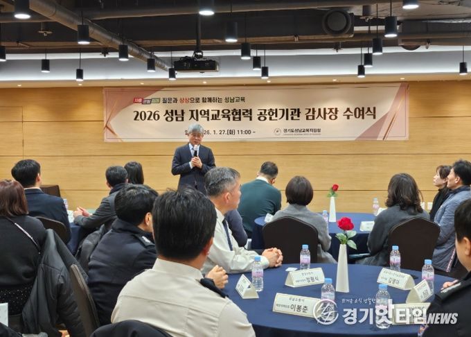 [경기핫타임뉴스=김삼영 기자] 경기도성남교육지원청은 1월 27일 스카이파크 호텔에서 '성남 지역교육협력 공헌기관 감사장 수여식'을 개최하여 성남교육 발전을 위해 협력해 온 지역교육협력기관 22곳에 감사의 뜻을 전했다.