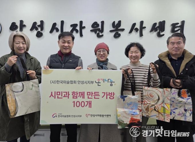 [경기핫타임뉴스=김삼영 기자] 안성시자원봉사센터는 지난 27일, 한국미술협회 안성시지회로부터 시민들이 직접 참여하여 제작한 에코백을 100개를 전달받았다.