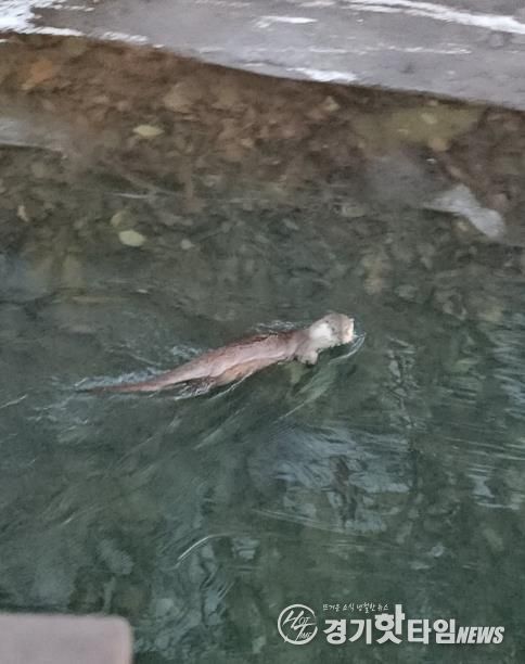 [경기핫타임뉴스=김삼영 기자] 군포시의 대표 휴식처인 반월호수에 멸종위기 야생생물 1급이자 천연기념물인 ‘수달’이 모습을 드러냈다.