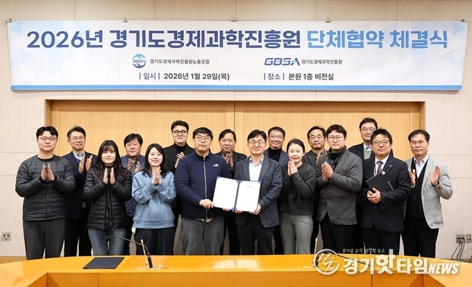 [경기핫타임뉴스=김삼영 기자] 경기도경제과학진흥원(이하 경과원)은 29일 노동조합과 ‘2026년도 단체협약’을 체결하고, 상호 신뢰와 존중을 바탕으로 한 동반자적 노사관계를 다시 확인했다.
