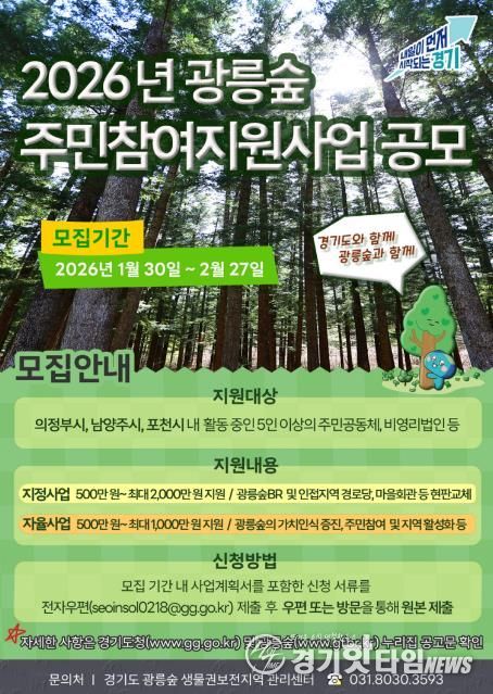 [경기핫타임뉴스=김삼영 기자] 경기도가 광릉숲 생물권보전지역 활성화를 위해 2026년 광릉숲 주민참여지원사업 참여자를 모집한다.