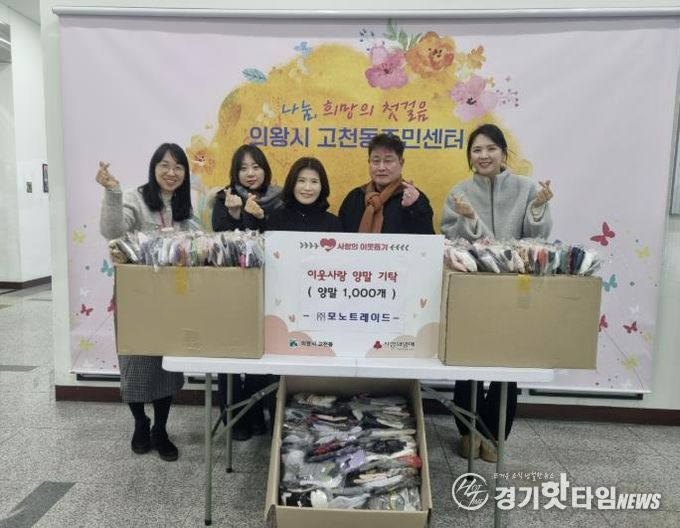 [경기핫타임뉴스=김삼영 기자] 의왕시 고천동주민센터가 1월 29일, 지역 내 취약계층을 돕기 위한 이웃돕기 물품으로 양말 1,000켤레를 기탁받았다.