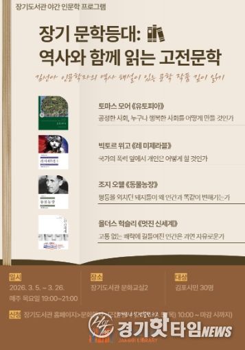 [경기핫타임뉴스=김형철 기자] 김포시 장기도서관은 야간 인문학 프로그램 ‘장기 문학등대: 역사와 함께 읽는 고전문학’을 오는 3월 5일부터 3월 26일까지 매주 목요일 저녁 7시에 장기도서관 문화교실2에서 운영한다고 밝혔다.