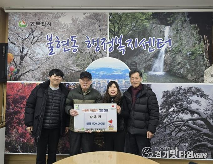 [경기핫타임뉴스=김형철 기자] 동두천시 불현동 행정복지센터는 지난 2일 주민 장용원 씨가 설을 맞아 어려운 이웃을 위해 성금 50만 원을 기탁했다고 밝혔다.