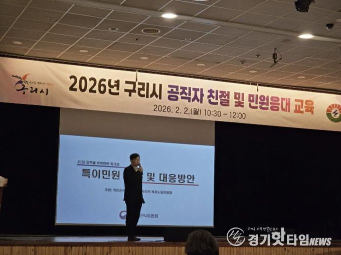 [경기핫타임뉴스=김형철 기자] 구리시는 지난 2일 시청 1층 대강당에서 시민이 체감하는 고품격 민원 서비스를 구현하기 위해 전 직원을 대상으로 ‘2026년 구리시 공직자 친절 및 민원 응대 역량 강화 교육’을 실시했다.