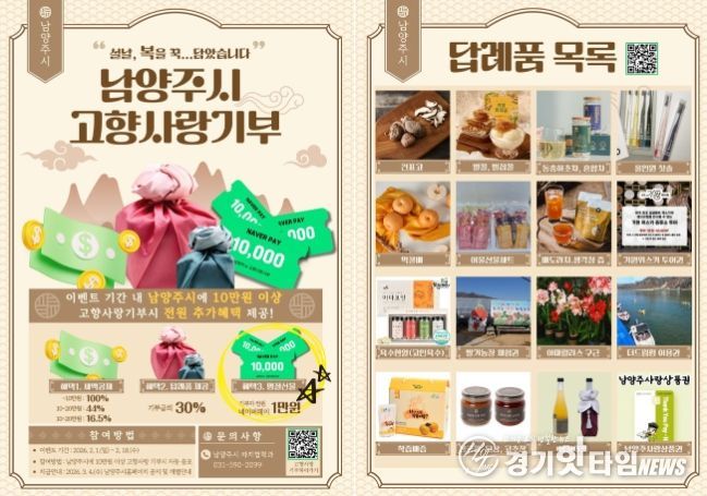 [경기핫타임뉴스=김형철 기자] 남양주시가 설 명절을 맞아 고향사랑기부제 활성화를 위해 ‘설맞이 세뱃돈’ 이벤트를 추진한다고 3일 밝혔다.