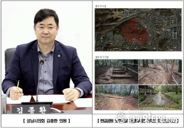 [경기핫타임뉴스=김삼영 기자] 성남시의회 국민의힘 김종환 의원(판교·백현·운중·대장동, 예산결산특별위원장)은 분당구 판교동 판교공원 일원 노후 산책로와 바닥포장 등을 정비하는 재정비공사가 본격 추진됨을 밝혔다.