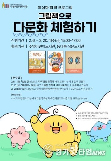 [경기핫타임뉴스=김형철 기자] 고양특례시 주엽어린이도서관은 겨울방학을 맞아 다문화 초등학생을 대상으로 특성화 협력 프로그램 ‘그림책으로 다문화 체험하기’를 운영한다.