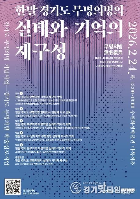 [경기핫타임뉴스=김삼영 기자] 경기문화재단은 경기도 무명의병 기념사업의 일환으로 제2회 학술심포지엄을 개최한다. '한말 경기도 무명의병의 실태와 기억의 재구성'이라는 주제로 2024년부터 이어온 경기도 31개 시군 무명의병 실태조사 성과를 학술적으로 공론하기 위해 마련됐다.