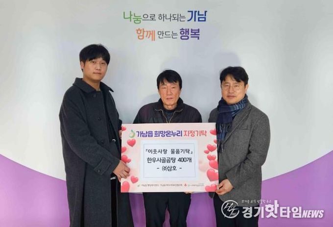 [경기핫타임뉴스=김형철 기자] 경기도 광주시 소재 축산납품업체인 (주)삼호는 지난 6일, 가남읍 행정복지센터를 방문해 관내 취약계층을 위한 사골곰탕 400개를 기탁했다.