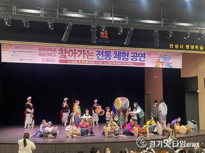 [경기핫타임뉴스=김삼영 기자] 안성시는 2월 10일 오전 10시 안성시평생학습관 2층 다목적실에서 열린 ‘찾아가는 전통 체험 공연 시즌 2 – 춤과 연희가 함께하는 무대’가 150여 명의 시민이 함께한 가운데 큰 호응 속에 성황리에 마무리됐다고 밝혔다.