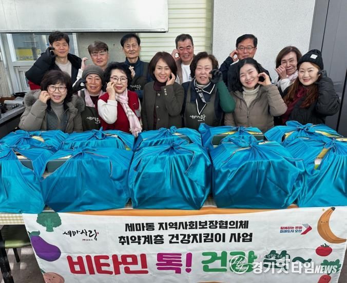 [경기핫타임뉴스=김삼영 기자] 오산시 세마동 지역사회보장협의체는 지난 10일 설 명절을 맞아 관내 저소득 취약계층을 대상으로 제철 음식 꾸러미를 지원하는 특화사업 ‘비타민 톡! 건강 쓱~’을 추진했다.