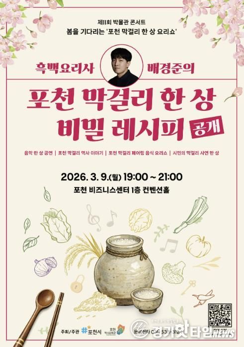 [경기핫타임뉴스=김형철 기자] 포천시는 오는 3월 9일 포천비즈니스센터 컨벤션홀에서 제11회 박물관 콘서트 ‘봄을 기다리는 포천 막걸리 한 상 요리쇼’를 개최한다.
