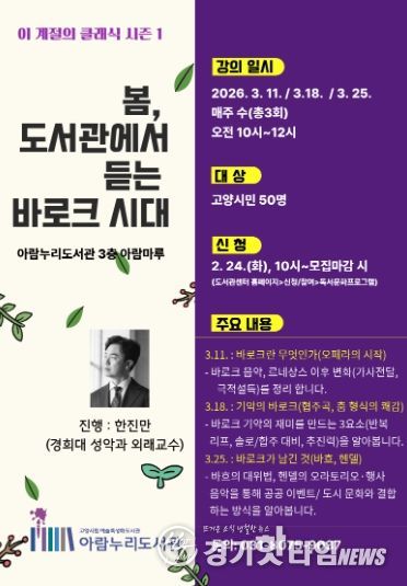 [경기핫타임뉴스=김형철 기자] 고양특례시 아람누리도서관은 2026년 한 해 동안 서양 음악사를 시대별로 조망하는 연간 기획 프로그램‘이 계절의 클래식’을 운영한다.