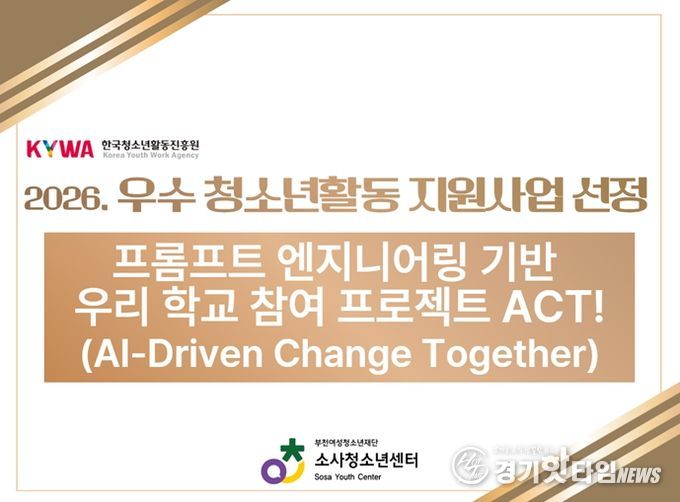 [경기핫타임뉴스=김형철 기자] 부천여성청소년재단이 운영하는 소사청소년센터는 한국청소년활동진흥원이 주관하는 ‘2026년 우수 청소년활동 프로그램 지원사업’ AI·디지털 분야에 선정됐다고 밝혔다.