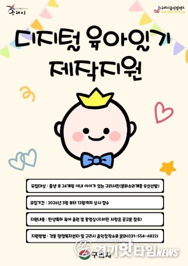 [경기핫타임뉴스=김형철 기자] 구리시는 3월부터 구리시 탄생 축하 프로젝트의 일환으로 ‘디지털 육아일기 제작’ 사업을 구리시 음악창작소에서 본격 추진한다고 밝혔다.