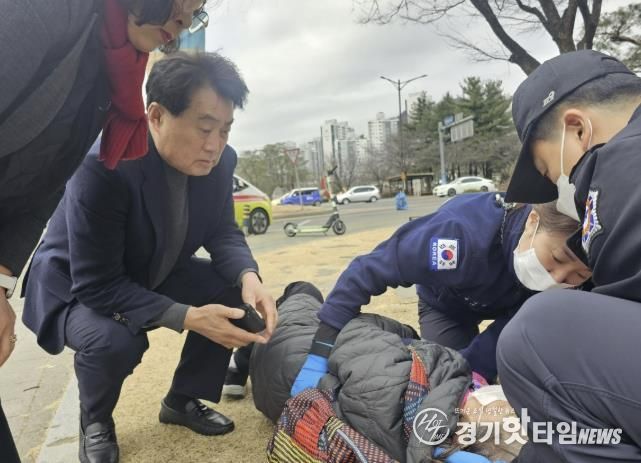 [경기핫타임뉴스=김삼영 기자] 하은호 군포시장이 길에 쓰러진 할머니를 발견하고 신속한 신고와 응급처치를 통해 무사귀환을 도와 화제다