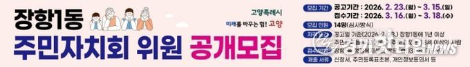 [경기핫타임뉴스=김형철 기자] 고양특례시 일산동구 장항1동이 2026년 상반기 주민자치회 위원을 공개 모집한다.