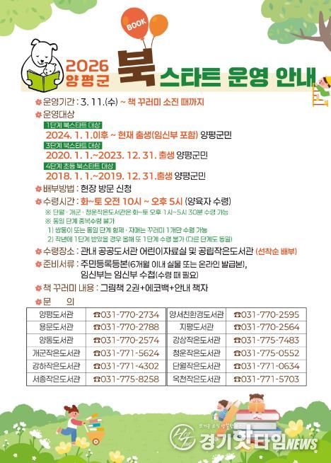 [경기핫타임뉴스=김형철 기자] 양평군은 오는 11일부터 ‘2026년 북스타트 사업’을 본격 운영한다고 밝혔다.