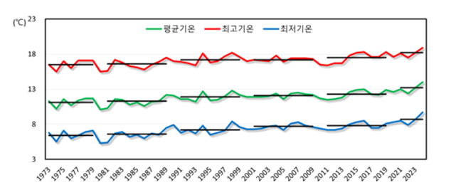 이번 보고서에는 1973년부터 관측 기록이 존재하는 6개 지점에 대한 기온, 강수, 극한기후지수의 장기 기후변화(1973∼2024년) 및 최근 10년(2015∼2024년) 기후변화 특성과 함께, 2000∼2024년의 지역별 및 도시·비도시간 기후변화 특성 비교 등의 분석 내용이 포함됐다.