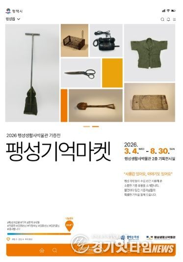 [경기핫타임뉴스=김삼영 기자] 팽성생활사박물관은 2026년 3월 4일부터 8월 30일까지 팽성생활사박물관 기획전시실에서 2026년 상반기 기증전 '팽성기억마켓 – 사용감 있어요, 이야기도 있어요'를 개최한다.