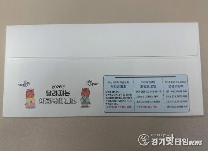 [경기핫타임뉴스=김형철 기자] 의정부시는 2026년부터 달라지는 의료급여 제도의 핵심 내용을 시민들에게 신속하게 알리기 위해 주요 변경 사항을 담은 맞춤형 우편봉투를 제작했다고 5일 밝혔다.
