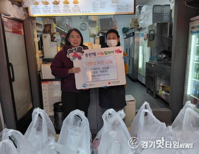 [경기핫타임뉴스=김형철 기자] 의정부시 송산1동주민센터는 2월 27일 60계치킨 고산점이 관내 저소득 한부모가정을 위해 치킨 10마리를 후원하며 따뜻한 나눔을 실천했다고 밝혔다.