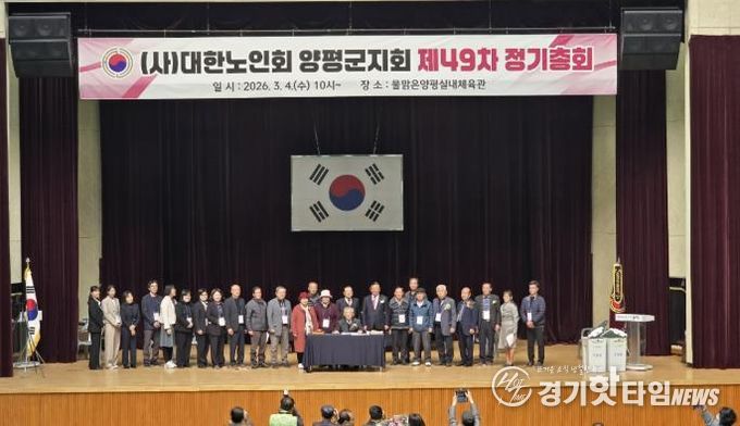 [경기핫타임뉴스=김형철 기자] 대한노인회 양평군지회는 지난 4일 오전 10시부터 오후 1시까지 물맑은양평체육관에서 지회장 및 대의원 350여 명이 참석한 가운데 ‘2026년 제49차 정기총회 및 제17대 양평군지회장 선거’를 개최했다.