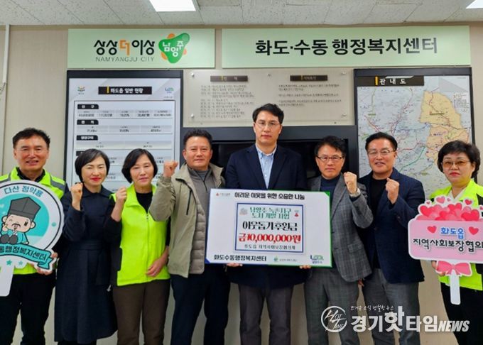 [경기핫타임뉴스=김형철 기자] 남양주시는 지난 4일 녹촌지구 도시개발사업 조합과 중흥토건㈜, ㈜성림그린산업이 화도읍 지역사회보장협의체에 관내 취약계층 가구를 위한 후원금 1,000만 원을 전달했다고 5일 밝혔다.