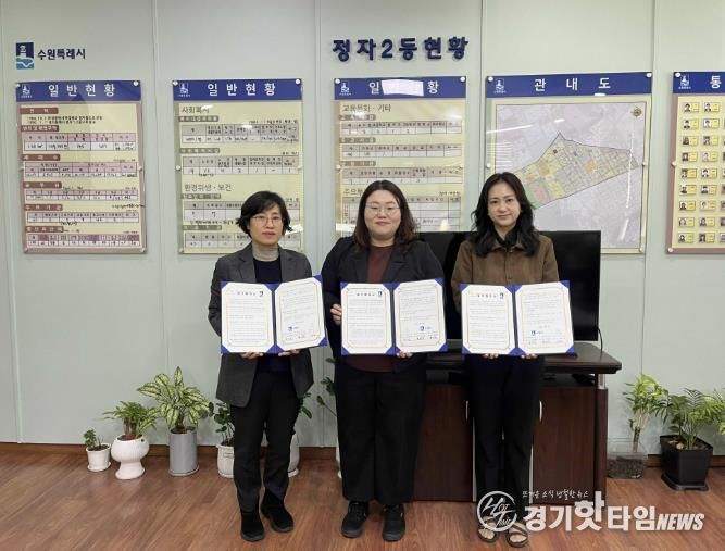 [경기핫타임뉴스=김삼영 기자] 수원시 장안구 정자2동 행정복지센터와 정자2동지역사회보장협의체는 지난 5일, 수원시 자살예방센터와 함께 ‘생명존중안심마을 조성을 위한 업무협약’을 체결했다.