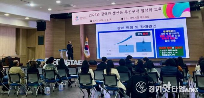 [경기핫타임뉴스=김삼영 기자] 평택시는 지난 5일 시청 본관 2층 대회의실에서 평택시 공무원을 대상으로 '2026년 장애인생산품 우선구매 활성화 교육’을 실시했다.