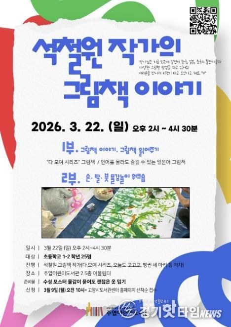 [경기핫타임뉴스=김형철 기자] 고양특례시 주엽어린이도서관은 어린이들이 그림책 작가를 직접 만나 창작 이야기를 듣고 물감놀이에 참여할 수 있는 프로그램 ‘석철원 작가의 그림책 이야기’를 오는 3월 22일 운영한다.