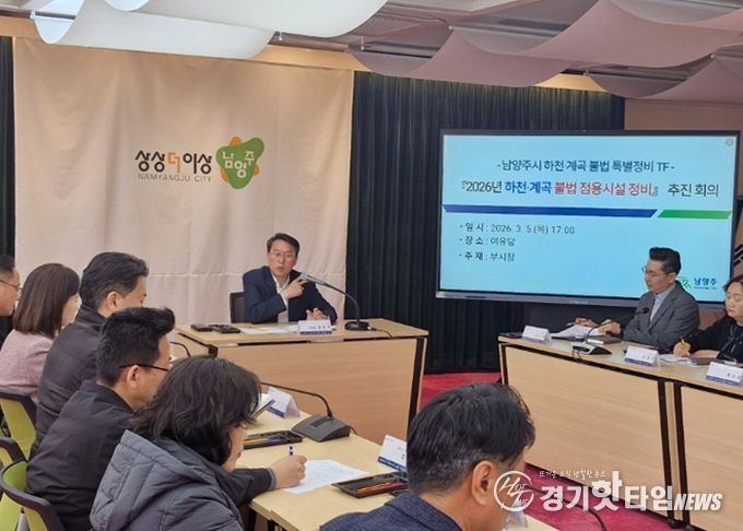[경기핫타임뉴스=김형철 기자] 남양주시는 5일 ‘남양주시 하천‧계곡 불법 특별정비 TF’를 구성하고 첫 회의를 개최해, 하천 내 불법시설물 근절과 수변 환경 재정비에 본격 나선다고 6일 밝혔다.