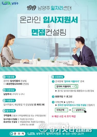 [경기핫타임뉴스=김형철 기자] 남양주시는 오는 9일부터 관내 구직자를 대상으로 ‘2026 온라인 입사지원서 및 면접 컨설팅’참여자를 모집한다고 6일 밝혔다.