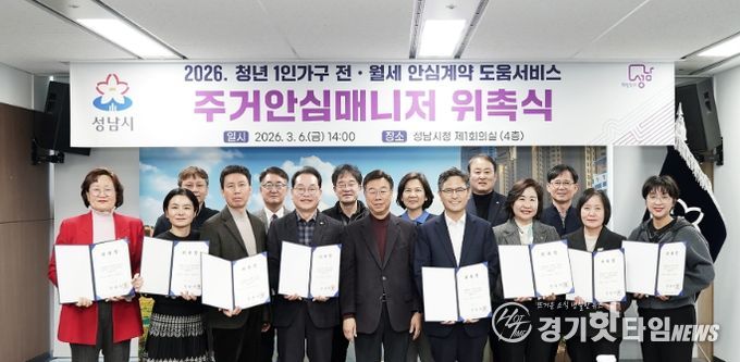 [경기핫타임뉴스=김삼영 기자] 성남시는 전월세 계약 경험이 부족한 1인 가구 청년층을 돕기 위해 현직 공인중개사 15명을 ‘주거 안심 매니저’로 위촉했다고 6일 밝혔다.