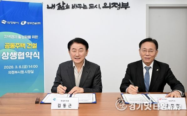 [경기핫타임뉴스=김형철 기자] 의정부시는 3월 6일 ‘아파트 3무(無) 혁신 10대 프로젝트’의 실효성을 높이고자 양우건설(주)과 세 번째 상생협약을 체결하고, 지역 건설산업의 상생 기반 구축과 경제 활성화에 본격적인 시동을 걸었다. 특히 이날 협약식에는 양우건설(주) 고문철 대표가 직접 참석해 시와의 협력 의지를 표명했으며, 이를 통해 사업 추진에 대한 신뢰도를 한층 높이는 계기를 마련했다.