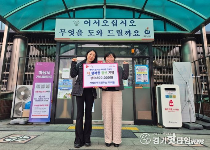 [경기핫타임뉴스=김형철 기자] 경기 하남시 미사3동 소재 선샤인뮤직하우스는 지난해 8월 성금 40만 원을 기탁한 데 이어, 올해 3월 6일에도 미사3동 행정복지센터를 방문해 관내 저소득 어린이를 위한 30만 원을 추가로 기탁하며 지속적인 나눔을 실천했다.