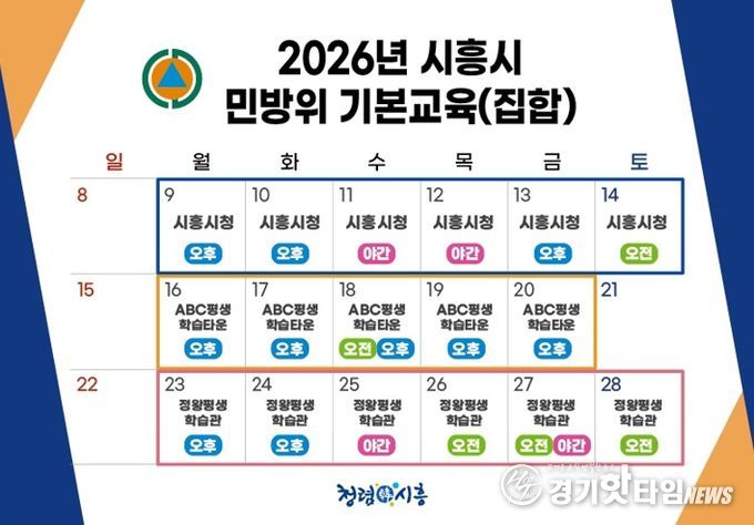 [경기핫타임뉴스=김삼영 기자] 시흥시는 3월 9일부터 관내 민방위대원을 대상으로 ‘2026년 민방위 기본교육’을 진행한다.